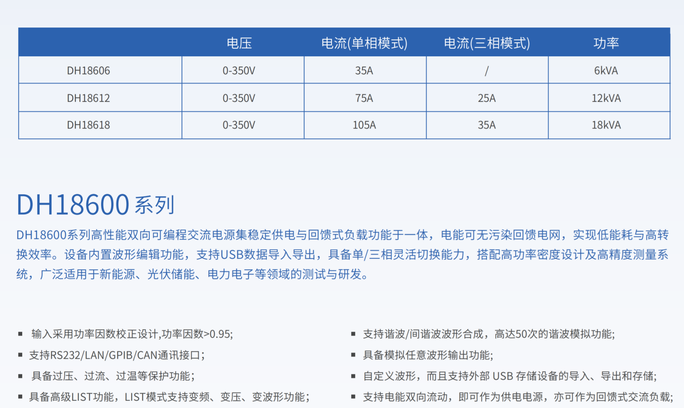 DH18600系列高性能双向可编程交流电源